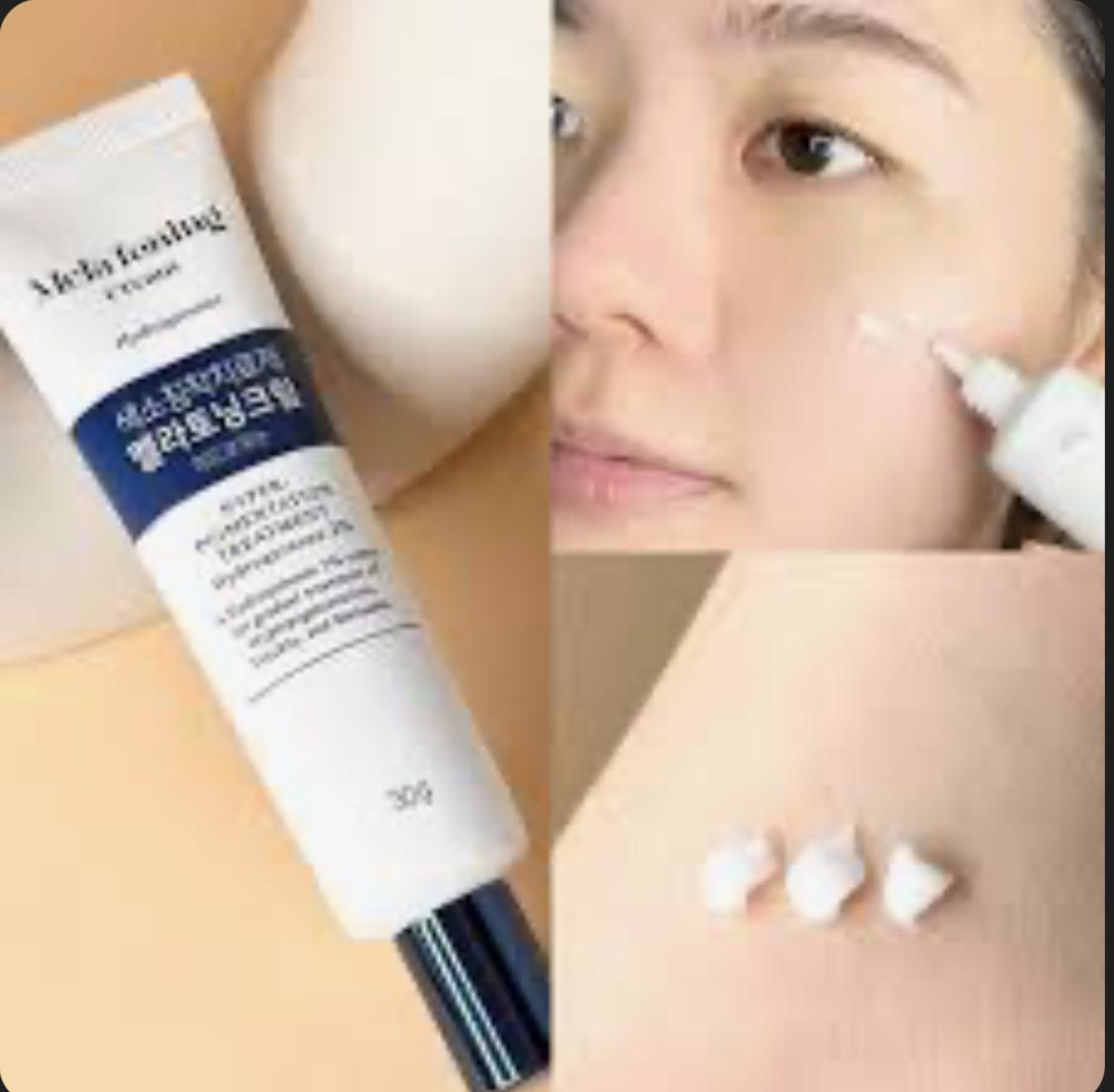 Mela Toning Cream is a Korean cream designed to treat discoloration, freckles and melasma. The ingredients contained in the cream inhibit melanin production, improve excessive melanin pigmentation and gradually whiten skin with discoloration.